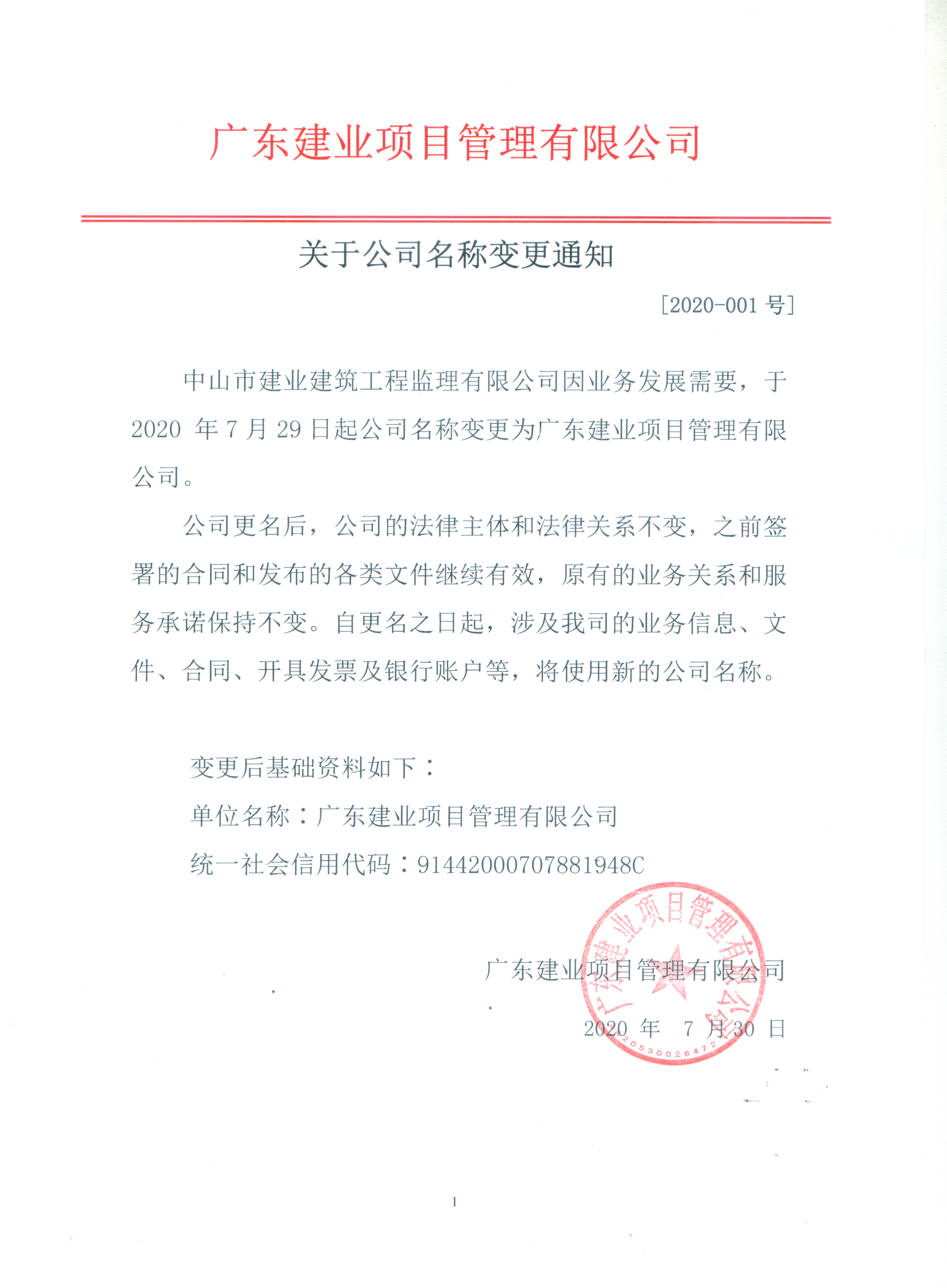 公司名稱變更通知